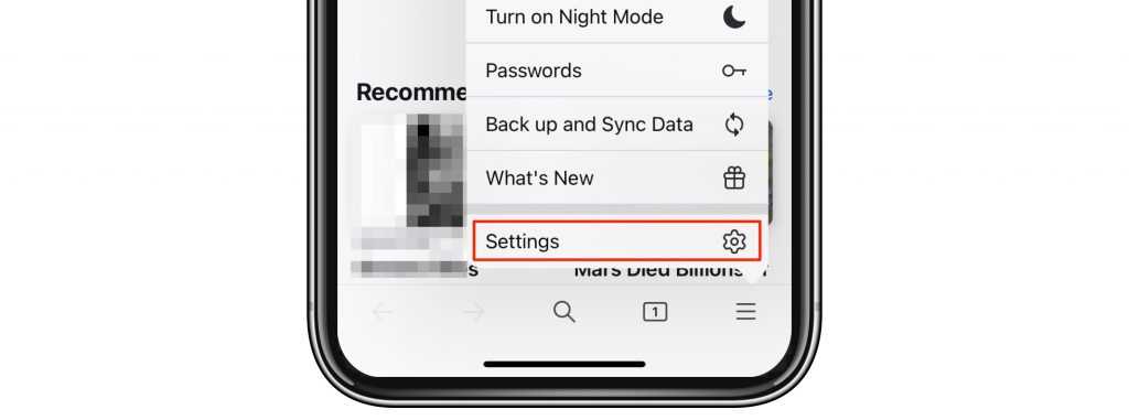 - Откройте Firefox и коснитесь значка меню (три линии) в правом нижнем углу. Нажмите «Настройки».