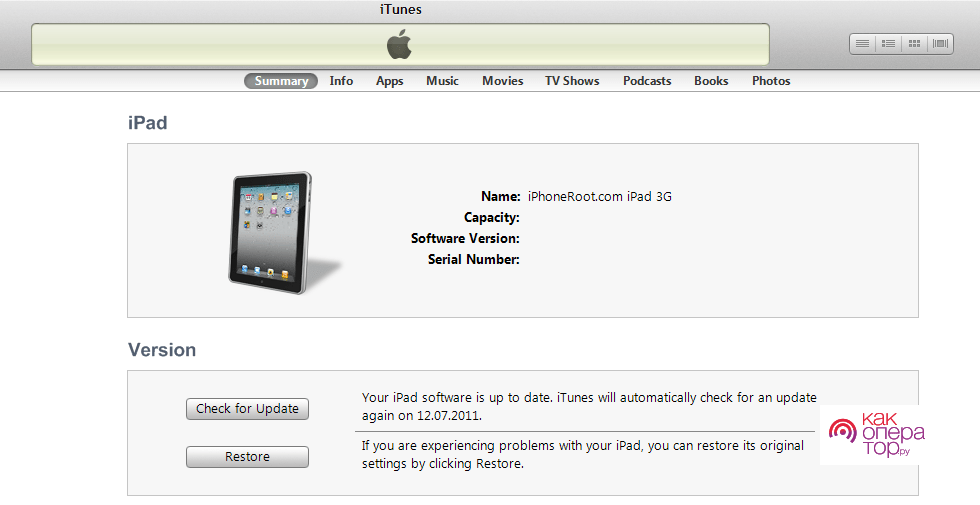 Поскольку iPad завис при обновлении прошивки, то здесь нужно избавиться от нынешней версии ПО и вернуть предыдущую. Для этого понадобится сам iPad, кабель и компьютер с уже имеющимся на нём приложением iTunes.