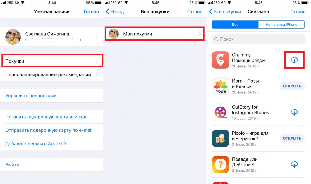 Если пользователь помнит название приложения, то достаточно снова найти его в Эпп Сторе и скачать на свой айфон. Если же программой пользовались давно, и название уже забылось, достаточно следовать этой простой инструкции: