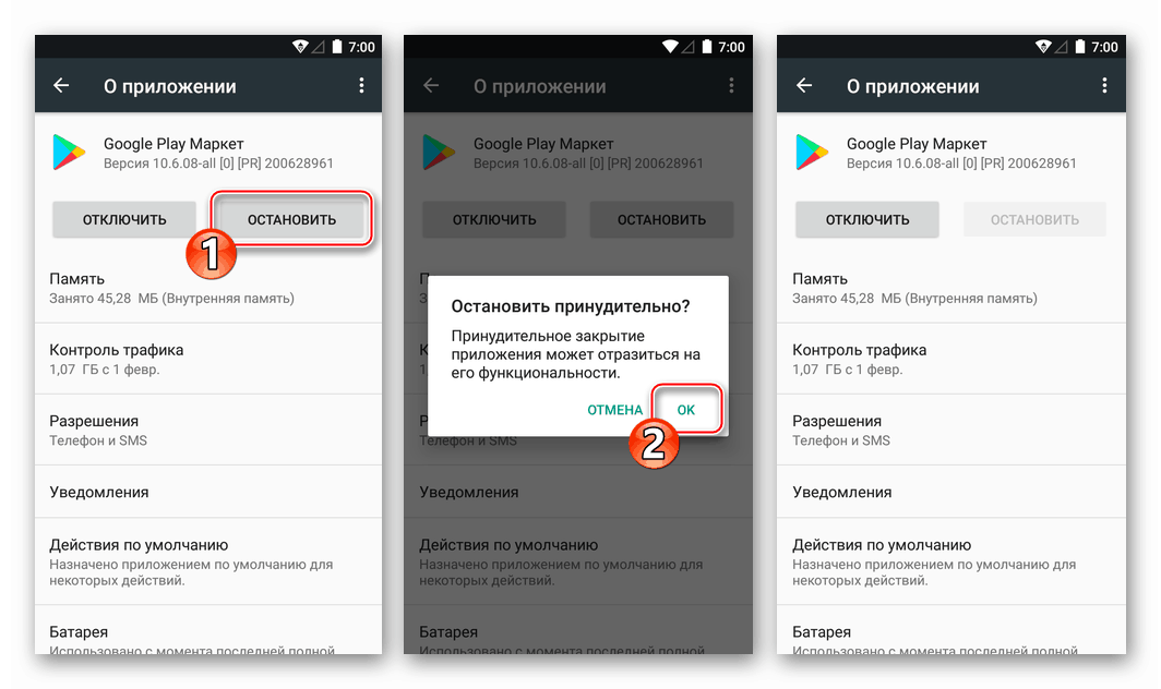 Ошибка при запуске Google Play Market на операционной системе Android
