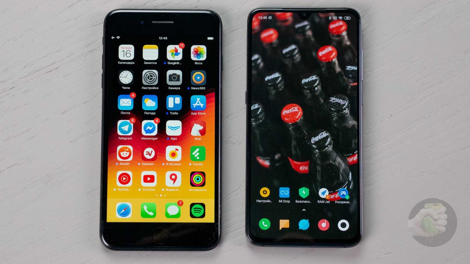 Физические размеры смартфонов очень похожи, однако при более крупном дисплее Xiaomi Mi 9 получился немного меньше, чем iPhone 7 Plus. Прогресс не стоит на месте!