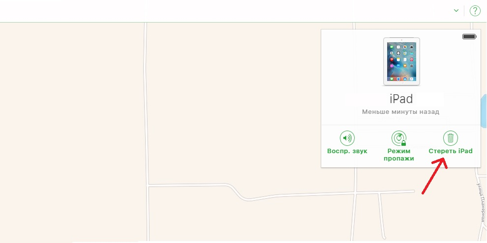 в правом верхнем углу страницы найти кнопку «Стереть iPad », кликнуть по ней и подтвердить своё действие.