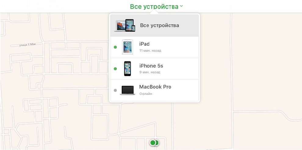 вверху страницы нажать «Все устройства» и выбрать заблокированный мошенниками iPad;