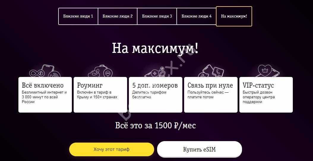 - Подключение к тарифу до пяти дополнительных номеров (своих или близких людей).