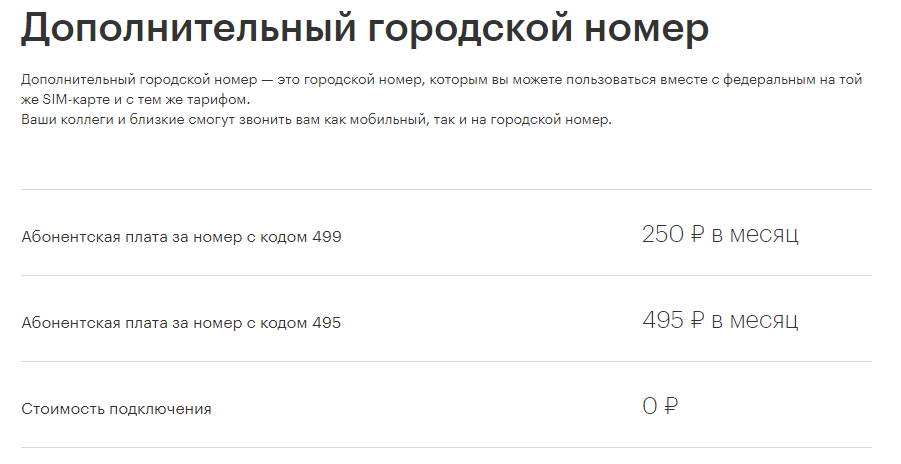 Важно! К сим-карте можно подключить только один дополнительный городской телефон