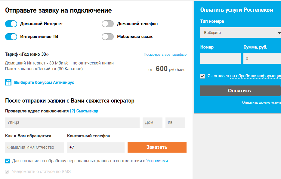На сегодняшний день сделать это очень просто, ведь у Rostelecom имеется удобный сайт с интуитивно понятным интерфейсом. Все, что необходимо сделать для подключения к провайдеру в качестве интернет-абонента, это: