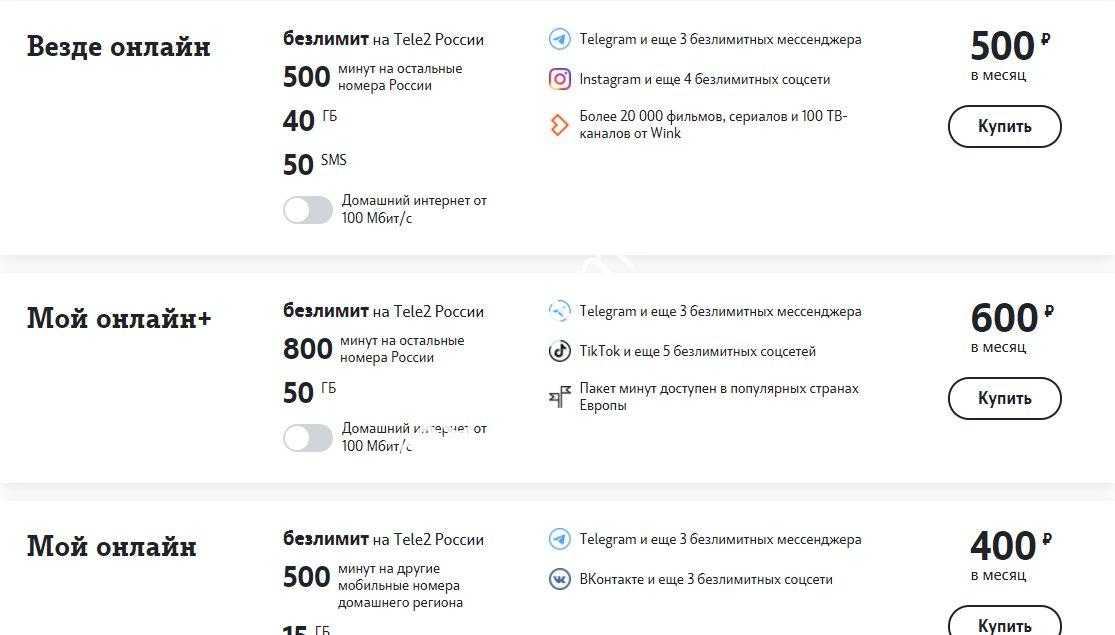 - В теле2 можно в обычные тарифы за доп. стоимость подключить домашний интернет со скоростью 100 Мбит/с.