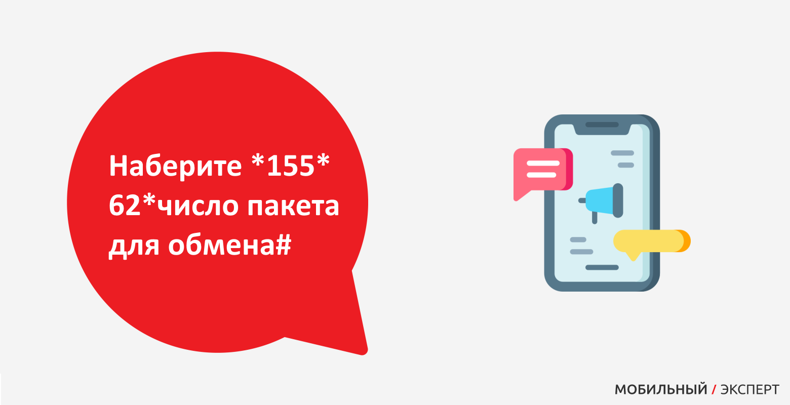 Запросить обмен минут на ценные гигабайты можно с помощью специальной USSD-команды из сочетания символов *155*62*число желаемого пакета для обмена#.