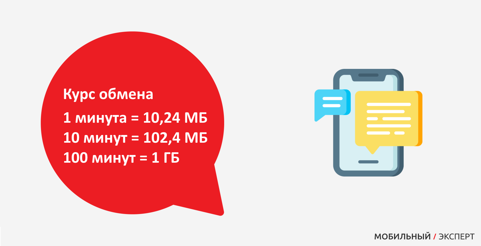 - 100 минут позволяют обменять на 1 гигабайт трафика.