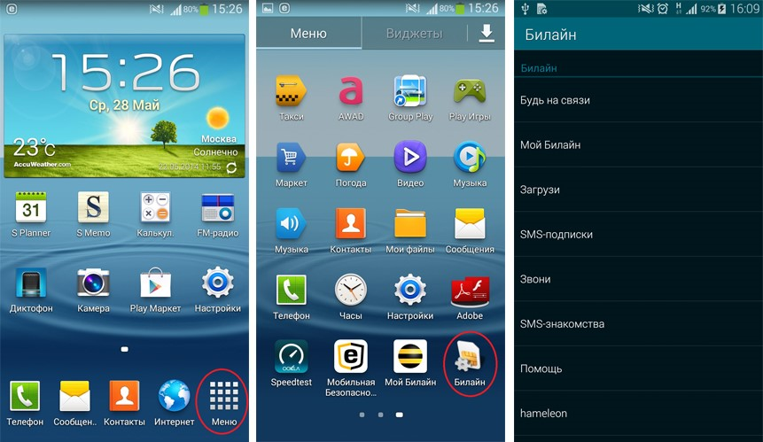 - Так, в девайсах на Андроиде достаточно просто зайти в меню и найти отдельный пункт «Билайн».