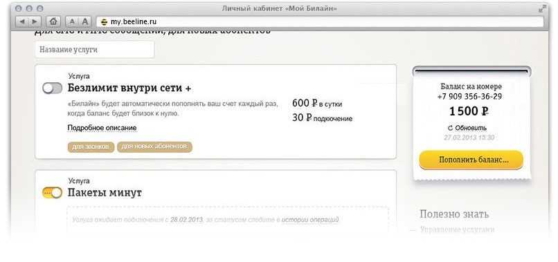 - Еще один способ избавления от ненужных подписок на «Билайне» – это отключение всего лишнего в личном кабинете. Для входа на свою приватную страницу можно воспользоваться этими координатами: my.beeline.ru.