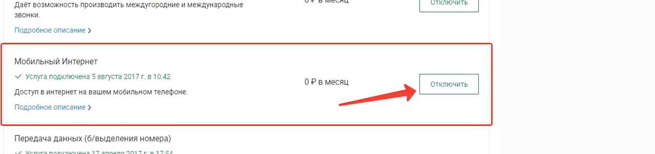 - Напротив лишних услуг нажимаете кнопку «Отключить».