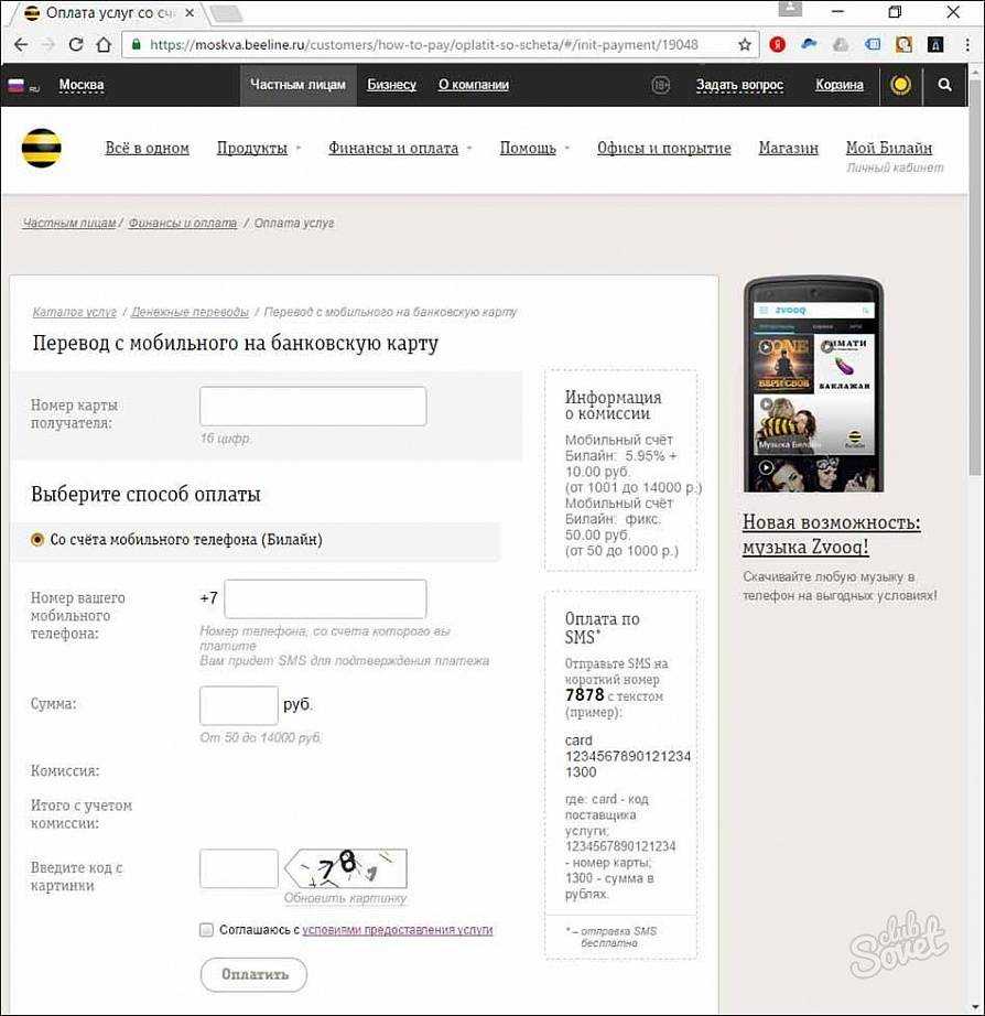 Как вывести деньги с телефонного счета Билайна на карту Сбербанка