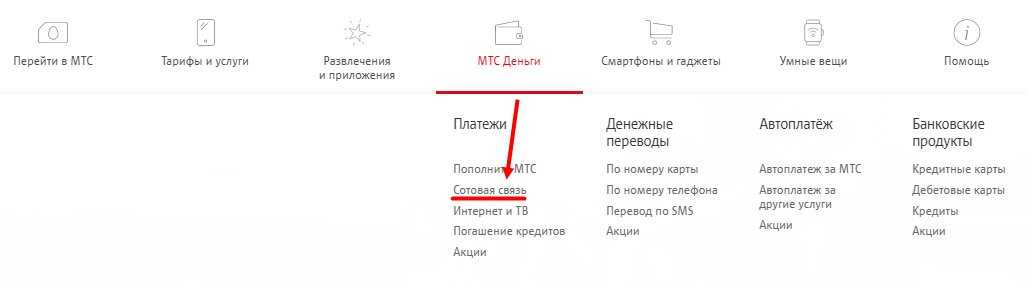 - В меню выбрать, куда вы хотите перевести деньги (соответственно, выбираете МТС).