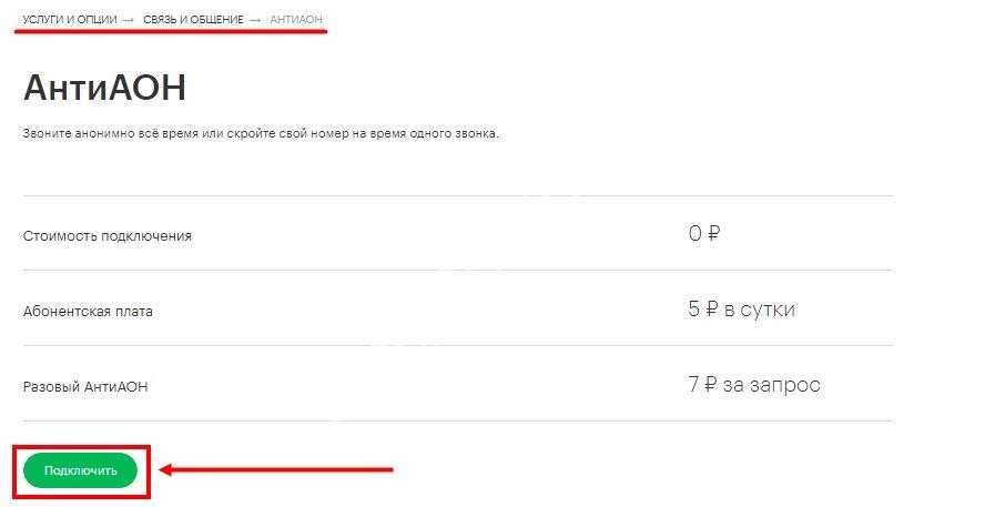 Если вы хотите неограниченно звонить со скрытого номера, воспользуйтесь услугой «АнтиАОН». Подключить услугу можно бесплатно. Абонентская плата 30 рублей в месяц. В рамках услуги «АнтиАОН» также можно воспользоваться разовым запретом определения номера. За каждый запрос нужно заплатить 5 рублей. Чтобы скрыть номер нужно указать код #31# перед номером вызываемого абонента.
