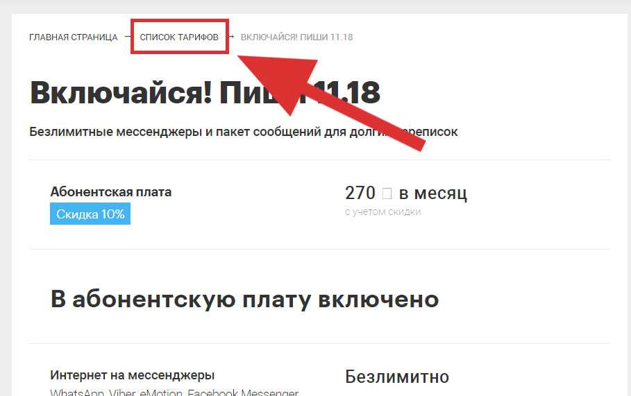 На новой странице будут показаны все ТП, доступные для подключения: сначала — самые популярные из линейки «Включайся», а затем уже все остальные — без абонплаты, с посекундной тарификацией, ТП для планшетов, модемов и других устройств.
