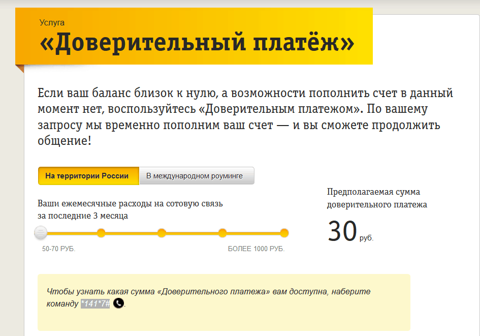 Доверительный платеж в роуминге предоставляется на тех же условиях, что и дома.