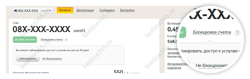 Здесь же, абонент может отключить интернет дома или временно заблокировать свой счет. Эта возможность пригодится, например, для того чтобы, во время поездки, когда вы не будете пользоваться услугами, деньги не тратились напрасно. Заблокировать интернет можно на срок до 60 дней.