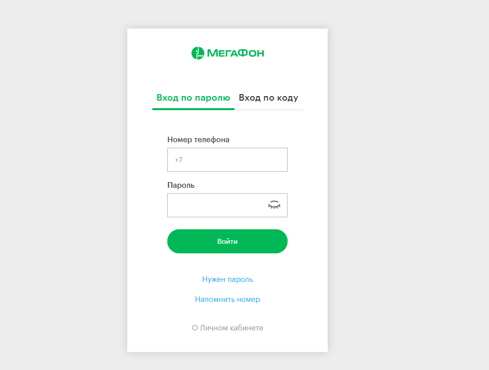 Также можно войти в личный кабинет Мегафон по номеру телефона без пароля. Рассмотрим основные варианты входа: