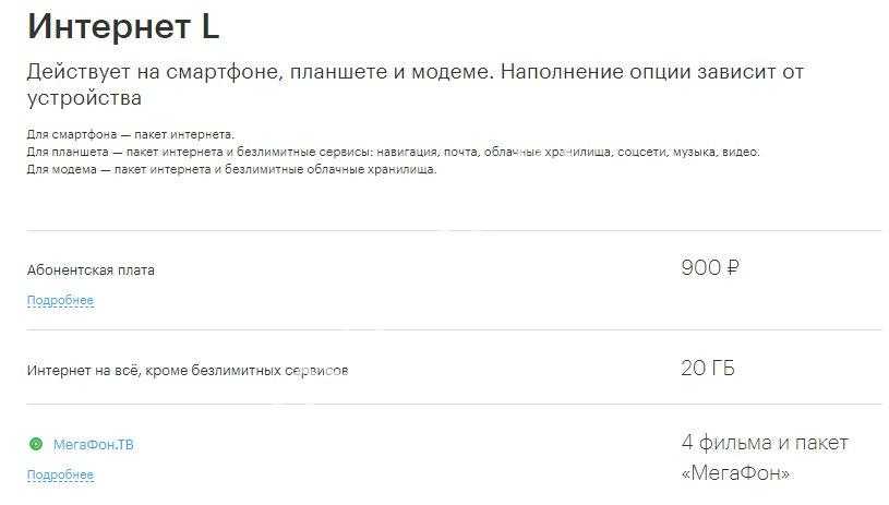 Тариф интернета для смартфона Мегафон «Пакет L»: