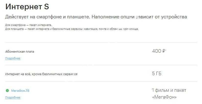Говоря о тарифах Мегафон для планшетов и модемов, стоит обратить внимание на эти опции. Рассмотрим каждую из них более подробно. Пакет S: