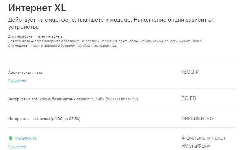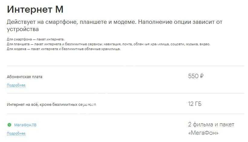 Тариф на мобильный интернет Мегафон «Пакет M» имеет следующие характеристики: