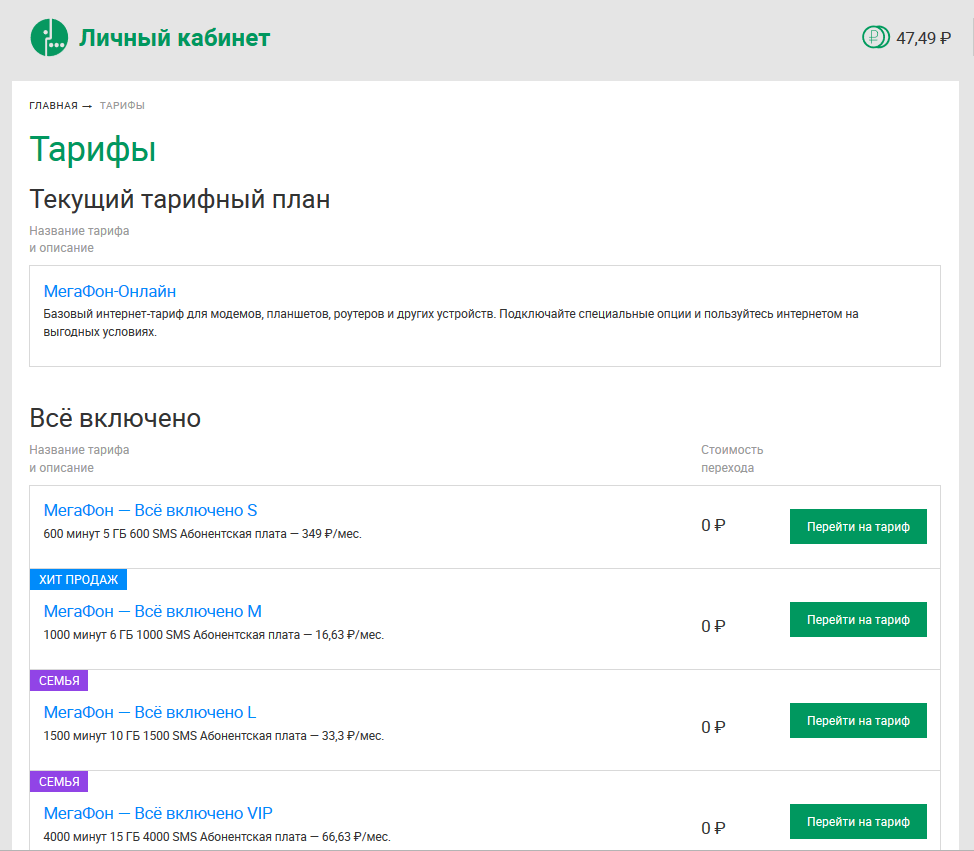 Тарифы для мобильной связи от МегаФон