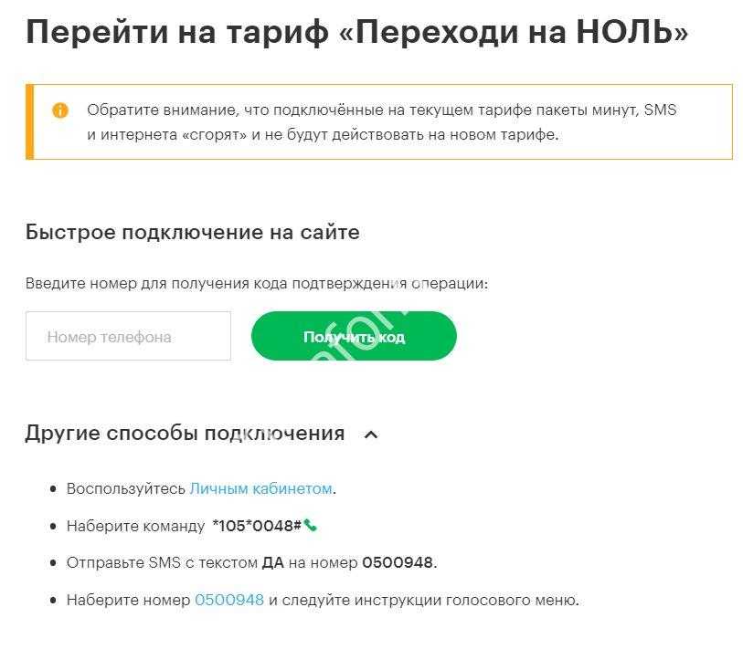 Вариант 2 Этот способ смены ТП также доступен на официальном сайте оператора.