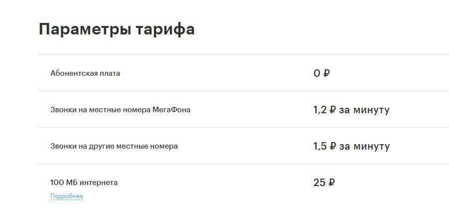 Параметры тарифа от Мегафон «Переходи на 0» таковы: