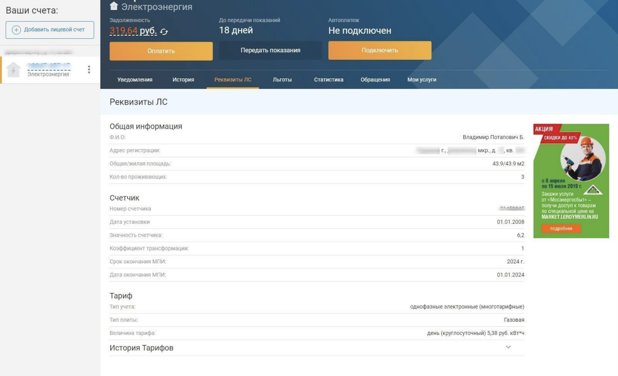 - Щелкните по вкладке и вы увидите всю текущую информацию по подключенному плану.