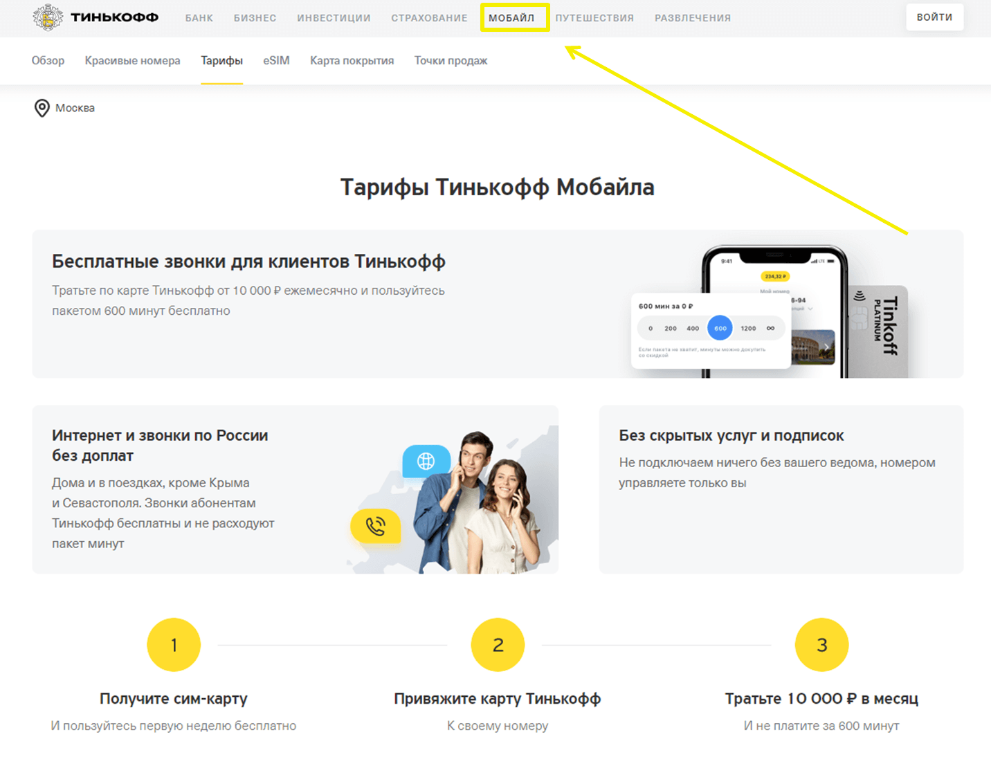 Пополнить Тинькофф Мобайл на официальном сайте оператора