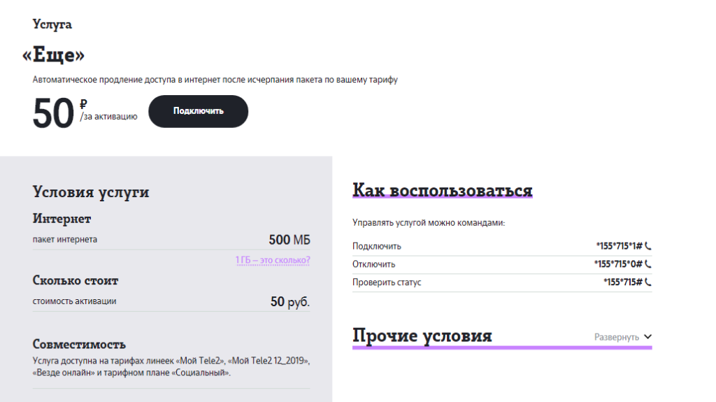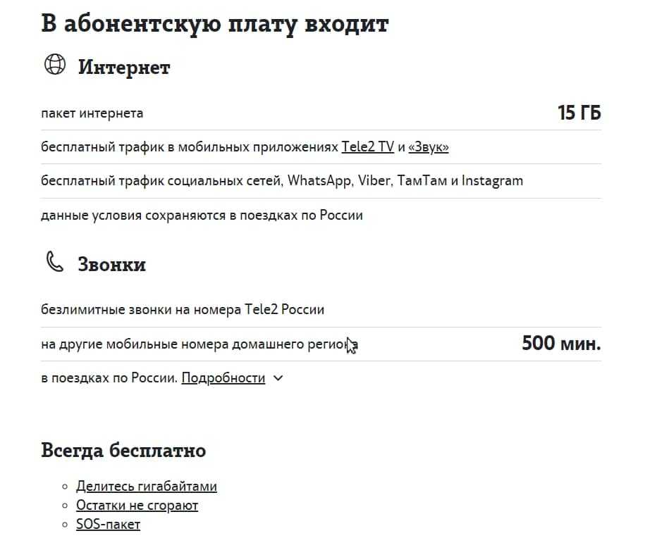С более подробным описанием тарифа Вы можете ознакомиться на официальном сайте https://tele2.ru.