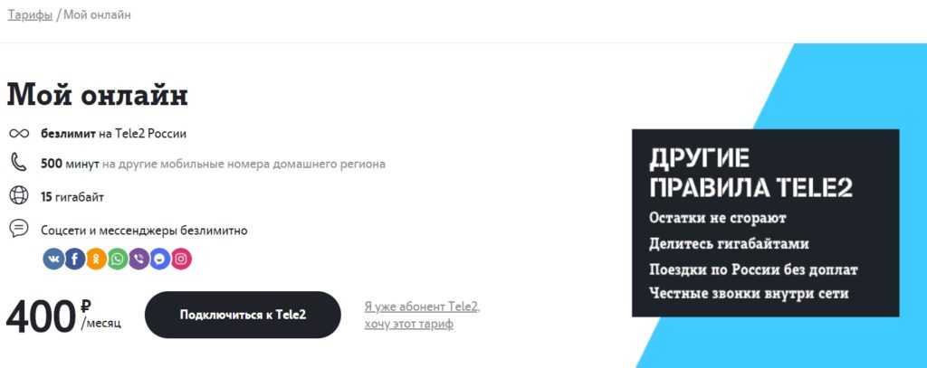 Подробное описание тарифа «Мой Онлайн» Теле2