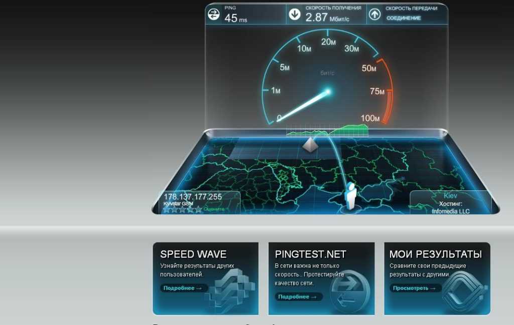 Существует ряд сайтов, которые позволяют измерить показатели интернет соединения, входящую и исходящую , определяют так называемый Ping (время c момента отправления сигнала с одного компьютера и до получения его другим компьютером). Ниже, мы подробнее поговорим о нескольких примерах подобных сервисов.