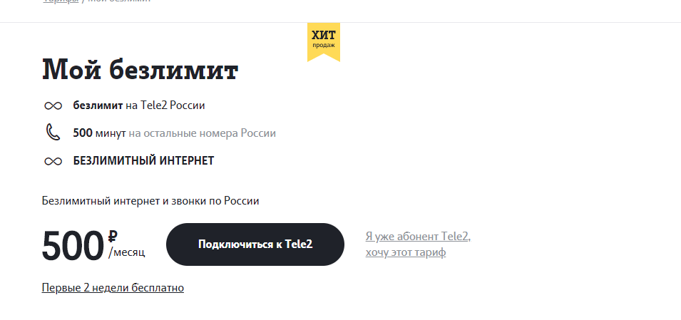 В базовую комплектацию тарифного плана «Мой безлимит» Теле2 входит:Что входит в тариф?
