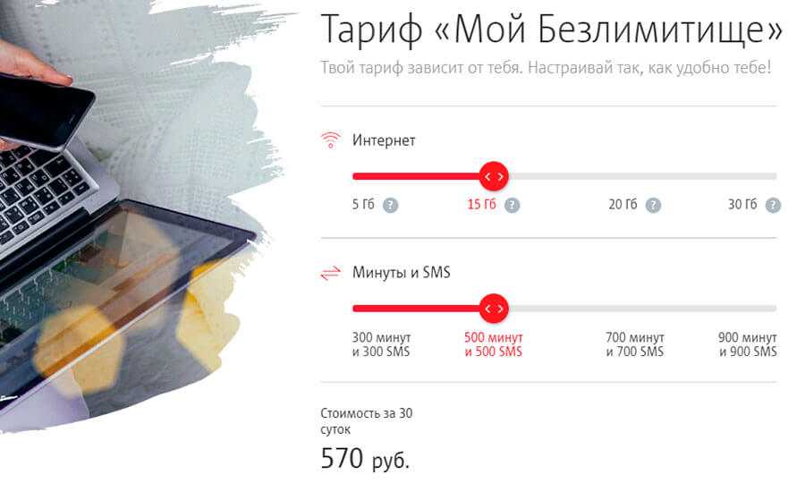 - Самостоятельный выбор объемов бесплатных пакетов;