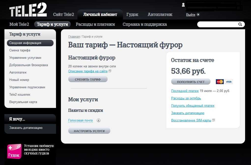 - При помощи персонального кабинета на главной странице оператора «Теле» tele2.ru необходимо выбрать раздел «Услуги и предложения», найти пункт «Черный» и нажать кнопку «Ок». Активация произойдет в течение 5-7 минут.