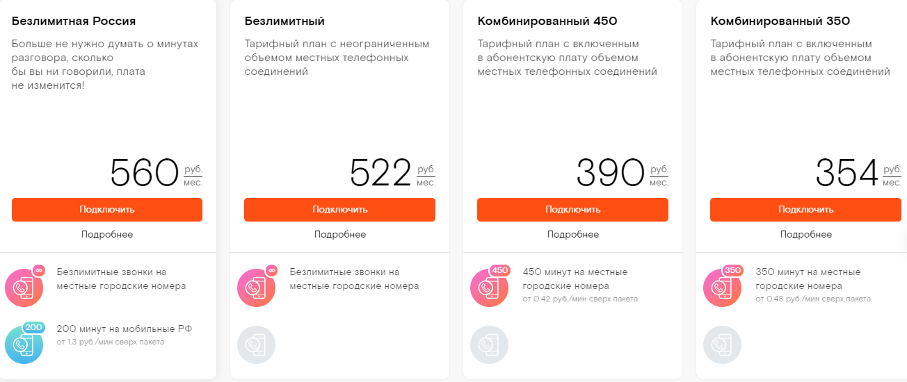 Пользователи продолжают подключать стационарные телефоны, пусть и не так активно, как два десятилетия назад. Ростелеком учитывает, что потребности клиентов за эти годы изменились, и предлагает внушительную линейку тарифных планов на домашний телефон, которые можно разделить на несколько групп: