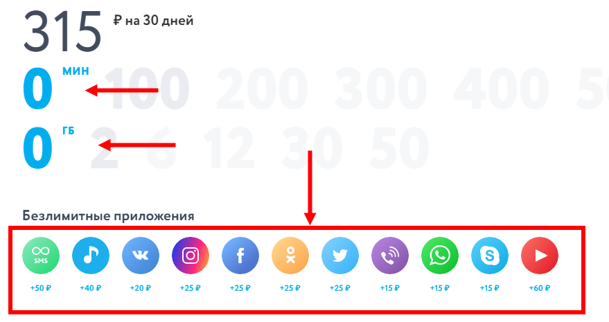 Долгое время минимальные тарифы у мобильного оператора Йота для смартфонов включали в себя пакет минут и мобильного трафика. Но начиная с 2018 года оператор создал уникальное предложение. Теперь Вы можете построить тариф, в который будет входить 0 минут и 0 Гб трафика, а платить Вы будете только за СМС или безлимитные соцсети. Например: