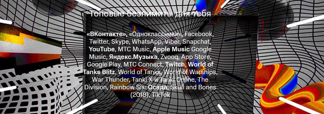 За 520 рублей в месяц вы получаете доступ без ограничений по трафику на следующие сайты и сервисы: