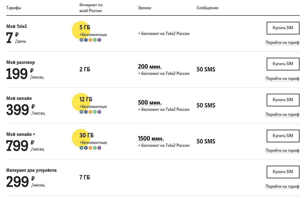 Оператор Tele2 предлагает достаточно щедрые тарифные планы. К примеру, в тариф «Мой онлайн» входит 12 ГБ интернет-трафика, 500 минут разговоров и 50 исходящих SMS-сообщений. Все это предоставляется за 399 рублей. У других сотовых операторов, в том числе «МТС», «МегаФон» и «Билайн», цены на такие услуги ощутимо выше, впрочем, многие находят разницу не слишком большой, поэтому такие люди не хотят переходить на альтернативного оператора.