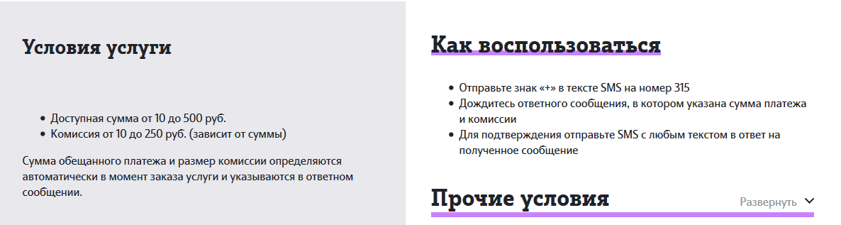 Другим вариантом будет использование варианта «Обещанный платеж +».
