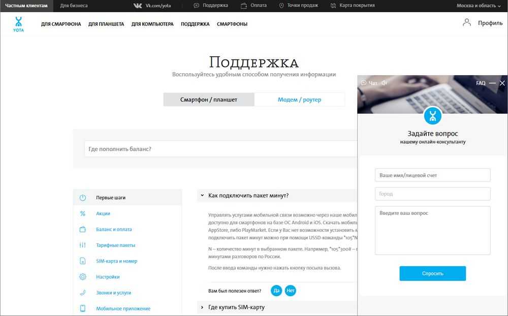 Несмотря на то, что у Йота есть бесплатный телефон службы поддержки, оператор делает большой упор на поддержку абонентов через интернет. В принципе, это даже удобно. Всем известно, сколько времени может отнять звонок оператору. Между тем, есть более оперативные способы получения консультации. Рассмотрим их все.