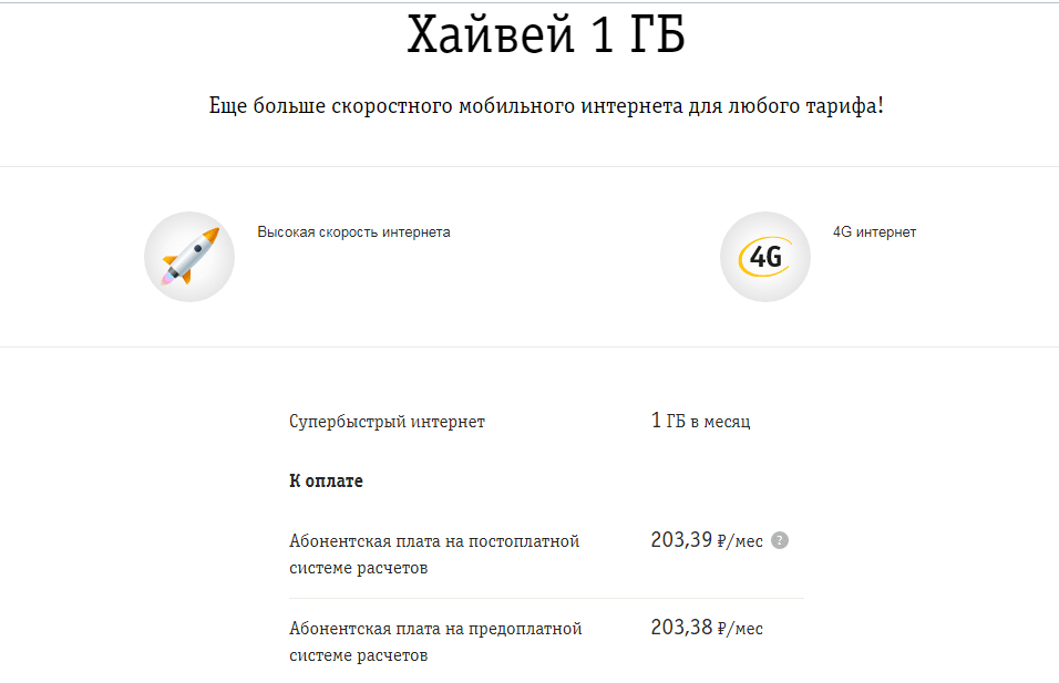В большинстве случаев чтобы продлить скорость Билайн специально включать услугу не нужно, на современных тарифах она активна по умолчанию и действует при условии наличия денег на балансе абонента. При этом выбирать самостоятельно какую версию услуги использовать нельзя – параметры опции определяются оператором на основании тарифа.
