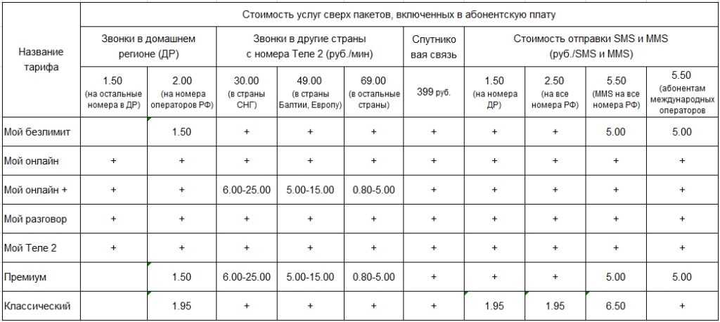 При использовании абонентом услуг, не предусмотренных тарифным планом «Мой Tele2», сотовый оператор взимает плату в соответствии с установленными в регионе тарифами. Сверх абонентской платы клиенту предоставляется следующий перечень услуг: