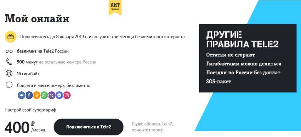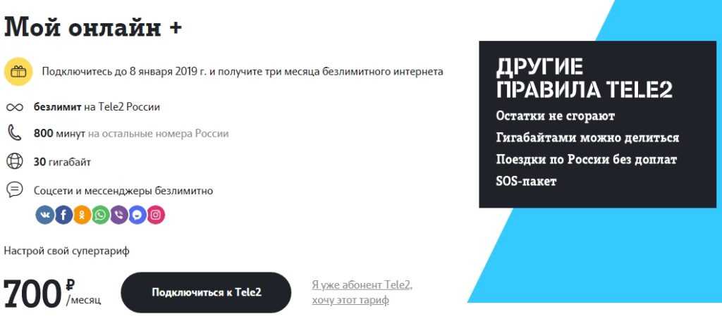 Тариф «Мой онлайн+» от Теле2: бесплатные услуги и абонентская плата