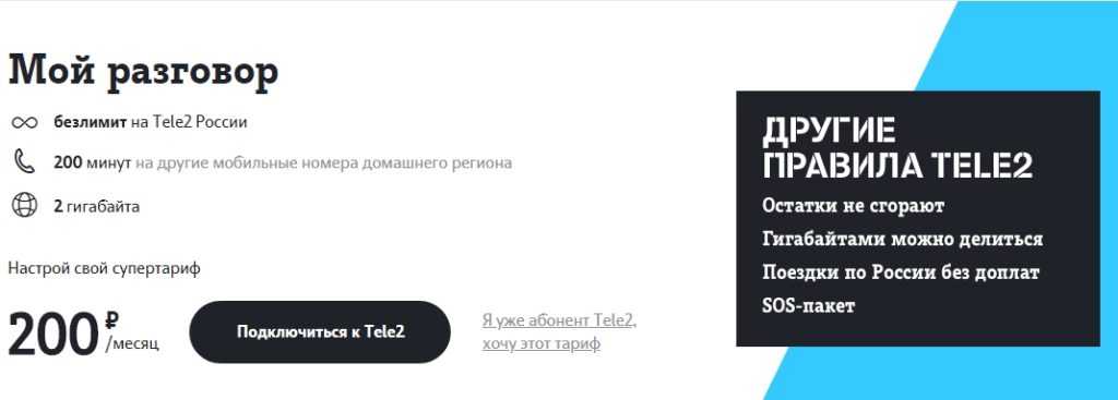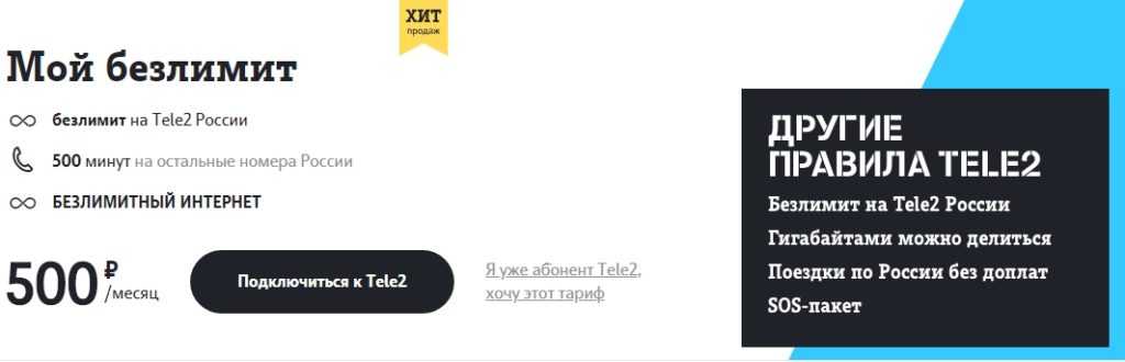 | Включая возможность безлимитного общения внутри сети Tele2 по России |