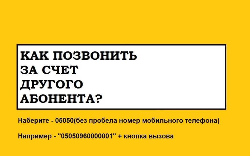 Чтобы говорить за счет собеседника, не нужно подключение дополнительных опций. При помощи определенной команды вы можете звонить за счет номера любого сотового оператора.