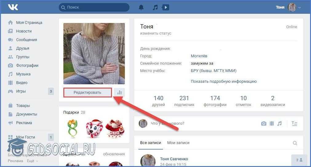 - Под статусом видна надпись «Редактировать». Нажмите ее.