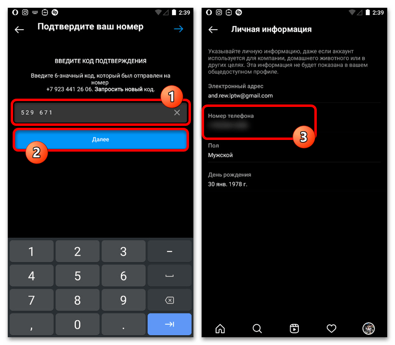 Если со смартфона, то нужно изменить контакт, дождаться кода для подтверждения и ввести его. Можно войти в Инстаграм через электронную почту, если она была указана в настройках страницы. Нужно авторизоваться при помощи почты и пароля, зайти в настройки, а затем следовать инструкциям из первой части статьи.